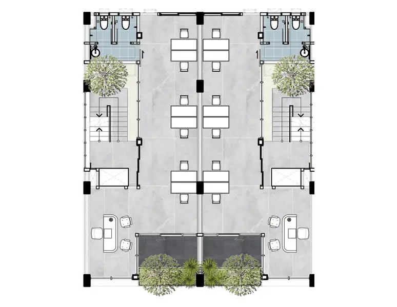 Although located close to a public road, the façade is thoughtfully designed to reduce external noise and reflect heat, keeping the interior quiet, cool, and energy-efficient. LANA combines modern aesthetics with smart functionality, offering a serene environment that enhances both living and working experiences.
